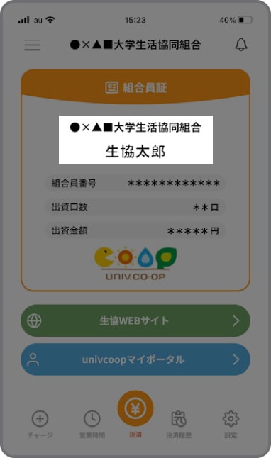 ※大学生協アプリに登録後、アプリ内の電子組合員証が入学者の氏名になっていることをご確認ください。